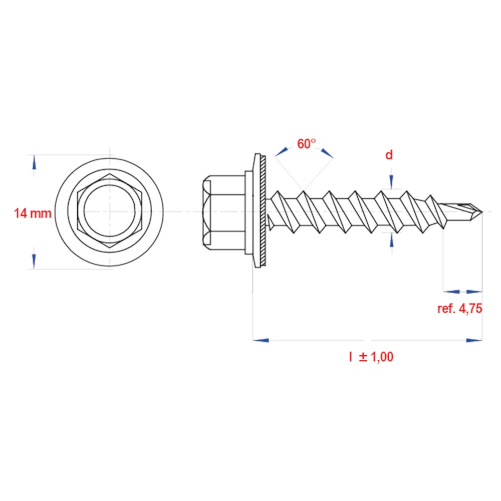 Zeskantboorschroef neopreen ring 14mm 4.8x35 ral7037 ve100