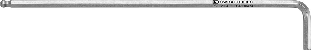 Inbussleutel met kogelkop voor binnen-zeskantschroeven, lange uitvoering. Perfect gevormde kogelkop, maakt het draaien van de schroeven tot onder een hoek van 30° mogelijk. Speciale legering met buitengewone elasticiteit bij hoge hardheid.