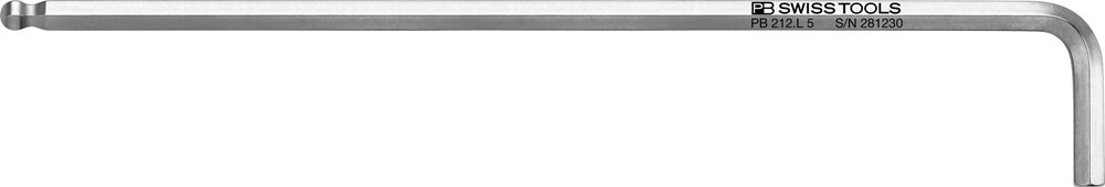 Inbussleutel met kogelkop voor binnen-zeskantschroeven, lange uitvoering. Perfect gevormde kogelkop, maakt het draaien van de schroeven tot onder een hoek van 30° mogelijk. Speciale legering met buitengewone elasticiteit bij hoge hardheid.