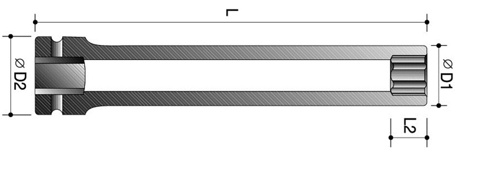 Slagdoppen 1/2" vierkant - 6-kant L=250 mm