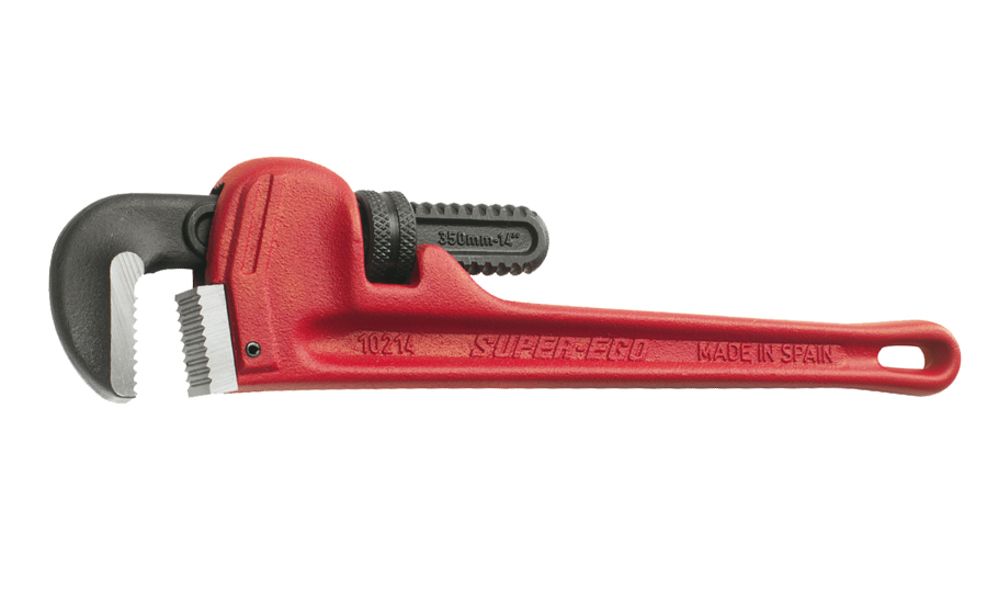 Platte geribbelde bekken voor directe grip op de pijp en perfecte ratelactie