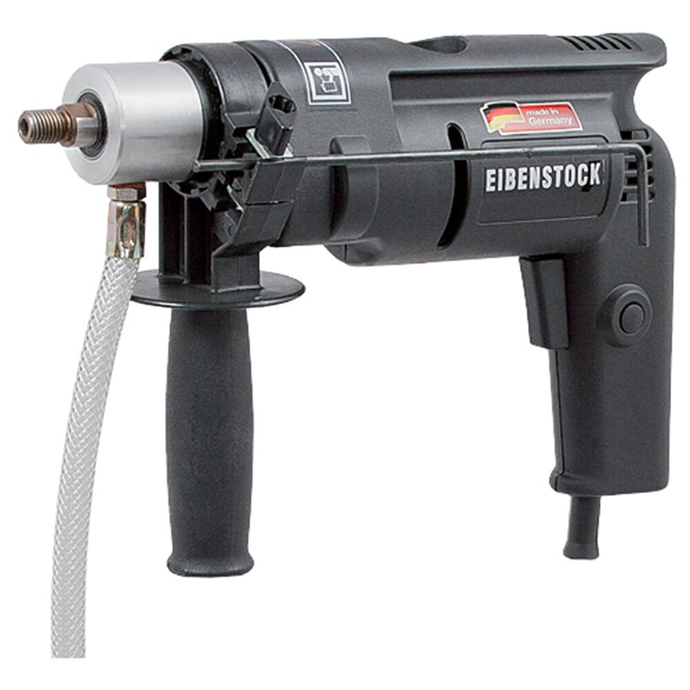 Compacte diamantboormachine voor het watergekoeld boren van gaten tot Ø 18 mm. in tegels, keramiek, glas, natuursteen en beton. Met roestvrijstalen hoofdas, elektronische softstart, geïntegreerde watertoevoer, PRCD schakelaar en extra verstelbare handgreep. Verpakt in metalen koffer.