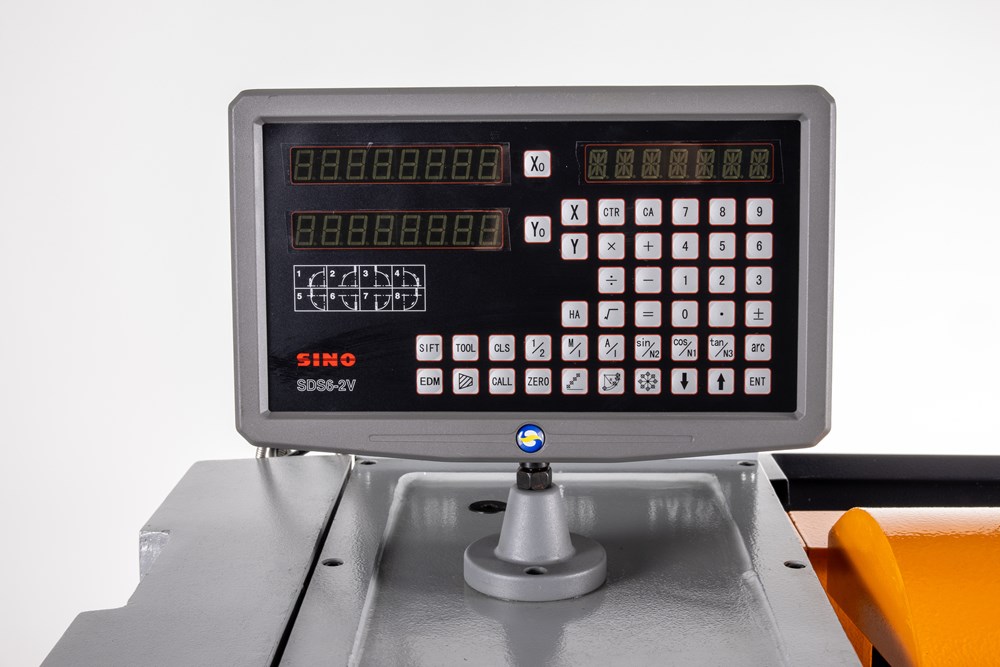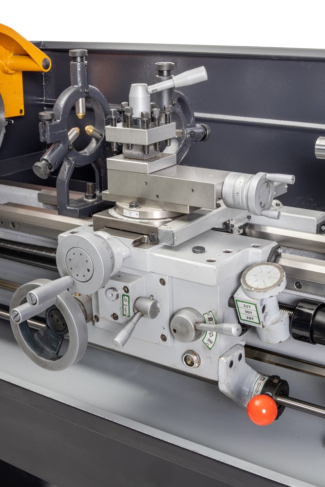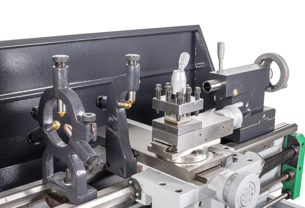 ProductomschrijvingDeze draaibank met variabel toerental (middels inverter) en digitale uitlezing (Sino) komt met 3-klauw, 4-klauw, vaste en meelopende bril, 2 centers, set wisselwielen en stelplaat. Losse kop 5 mm verstelbaar voor conisch draaien. Geschikt voor links-rechts draaien. Bed gehard en geslepen, evenals de tandwielen. Tandwielsmering in oliebad. Beveiliging tegen gelijktijdige inschakeling van langs- en dwarsgeleiding. Voorzien van noodstop en thermische beveiliging.