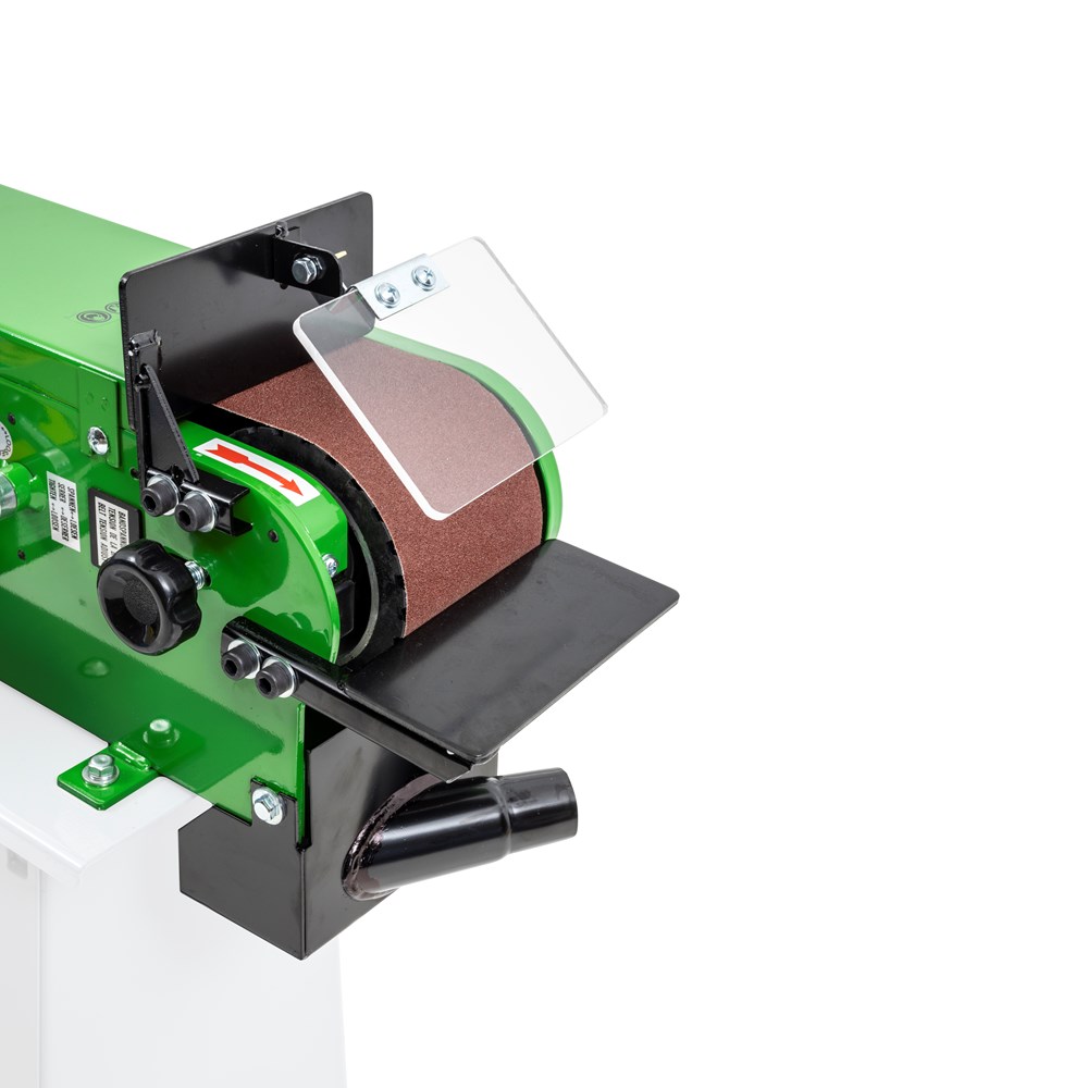 Keurig afgewerkte compacte bandschuurmachine. Zowel op voet als op tafel te plaatsen. Schuurband gemakkelijk te verwisselen. Ook in servicewagens te gebruiken.