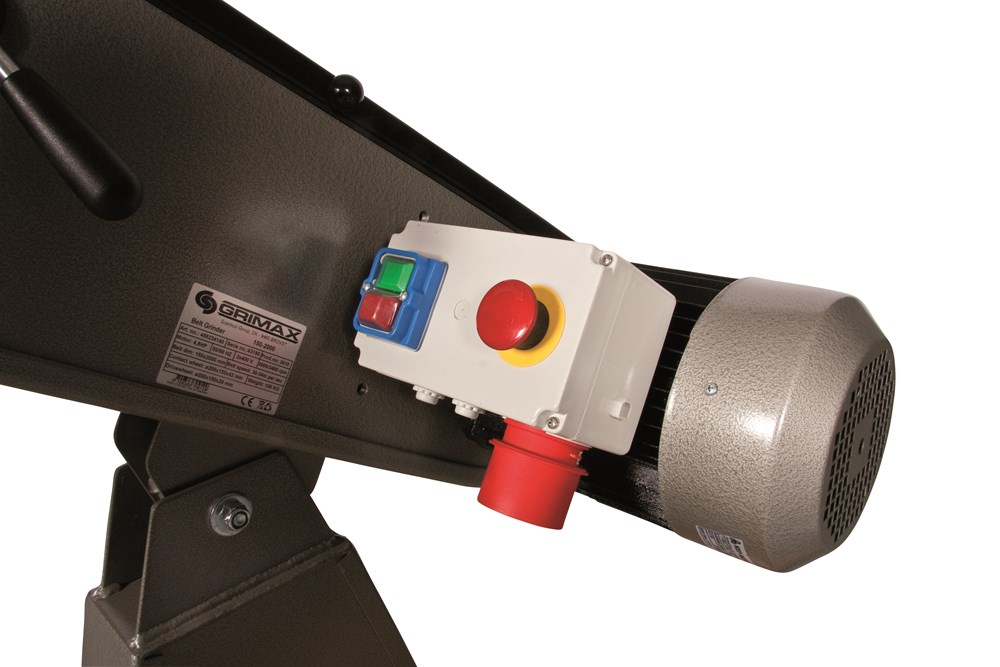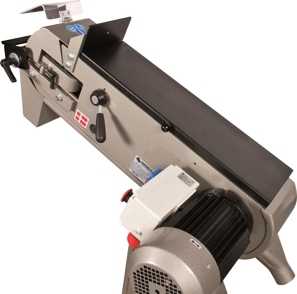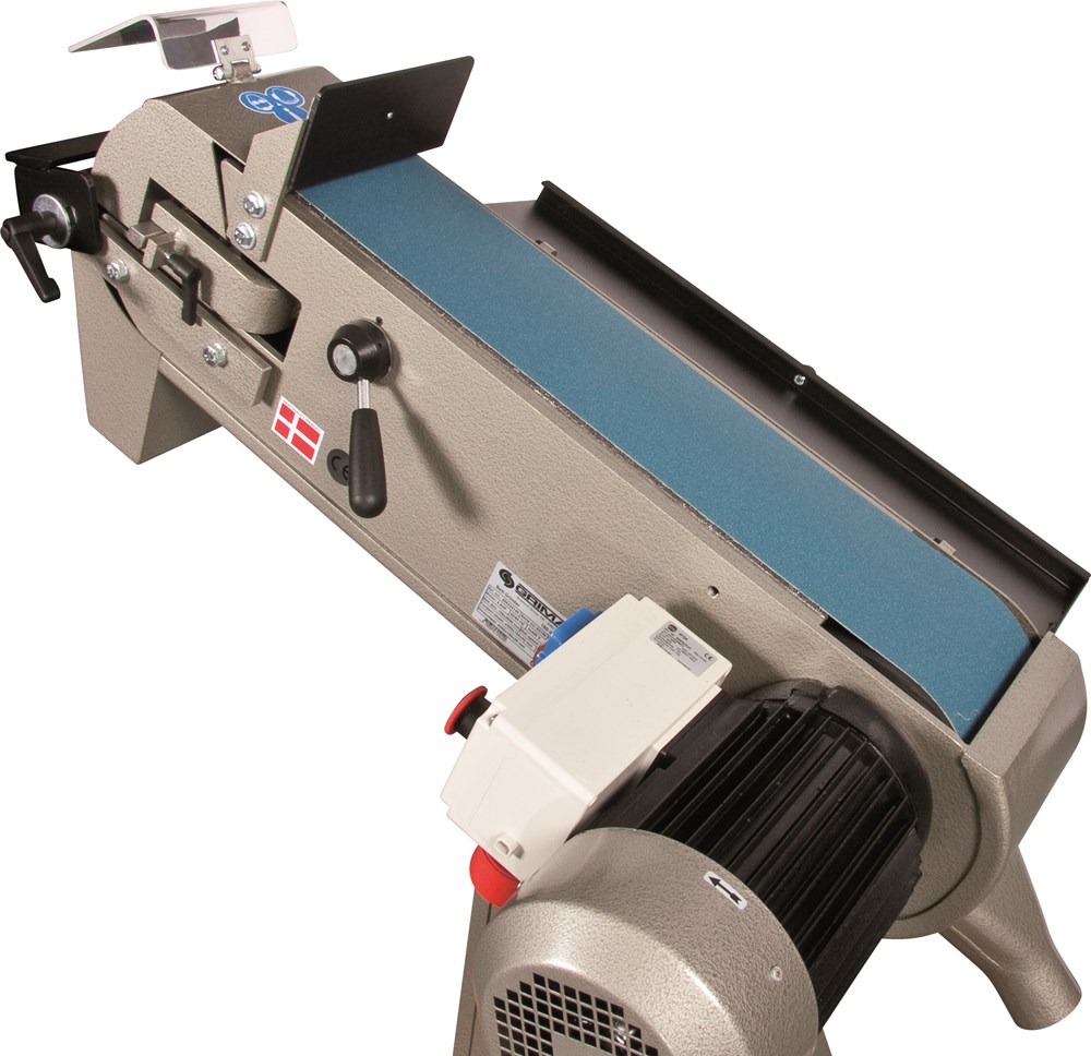 Perfect afgewerkte Europese bandschuurmachine. Met spanenopvangbak. Deksel over de lange bovenkant gemakkelijk op te slaan voor groot schuuroppervlak. Extra brede schuurband.
