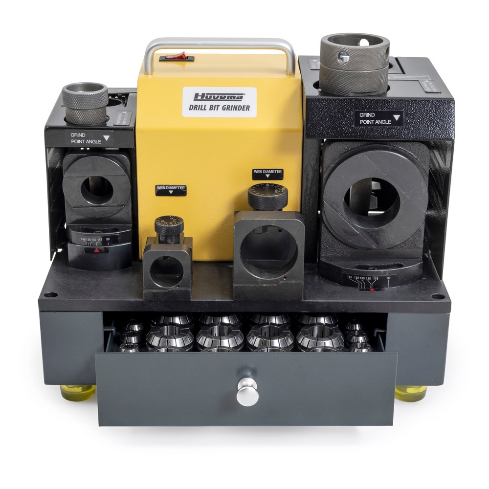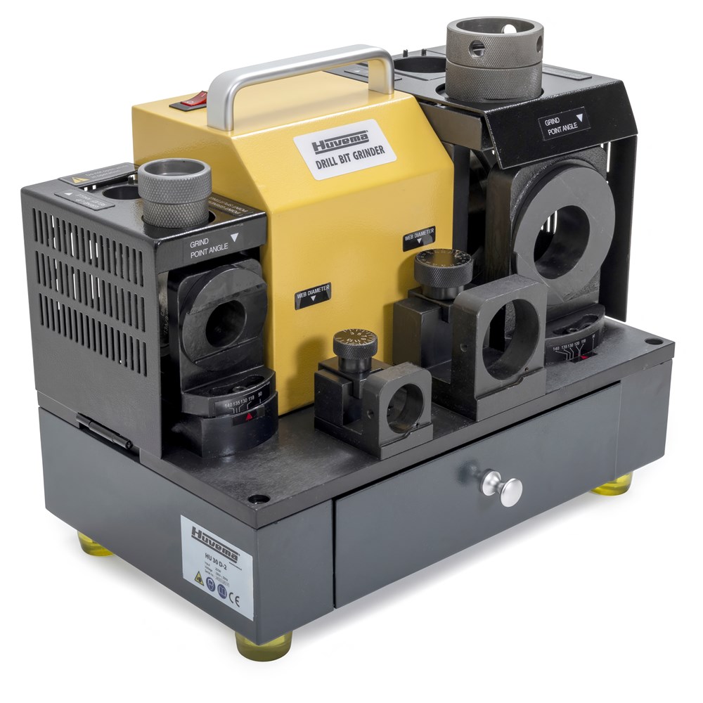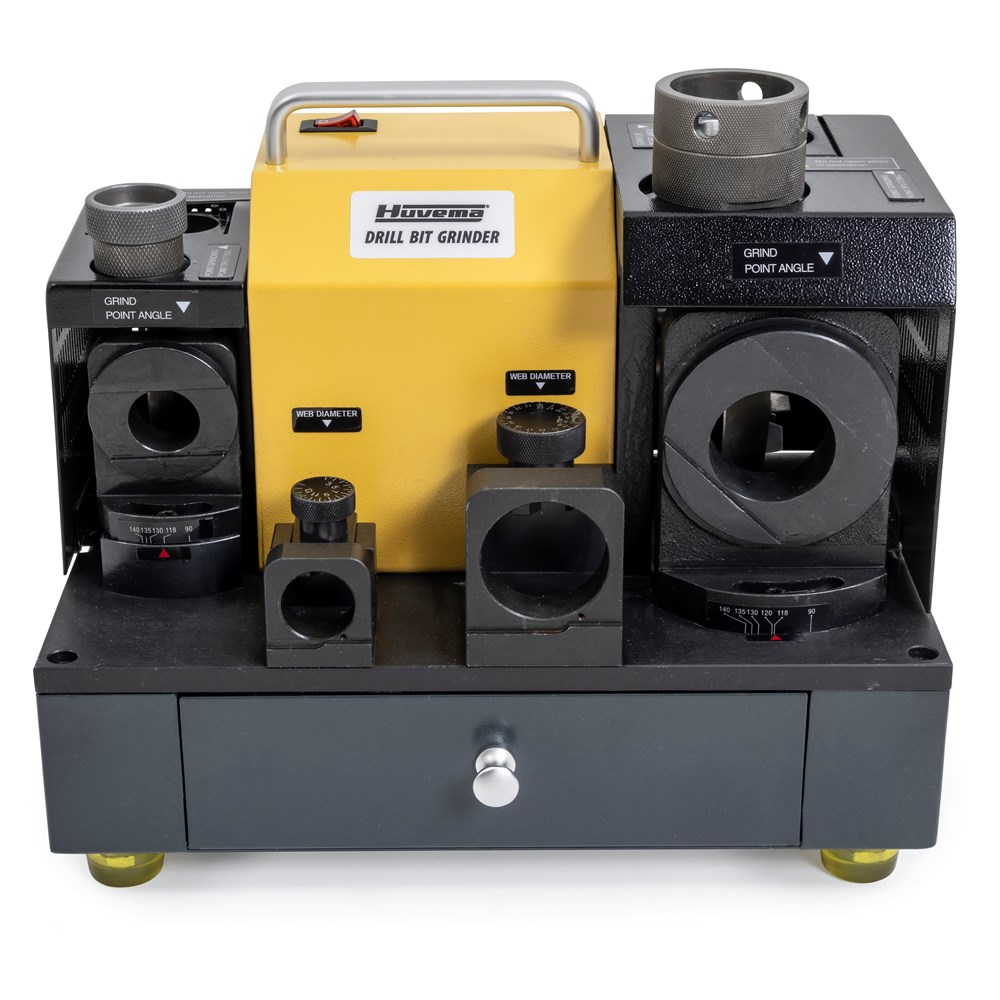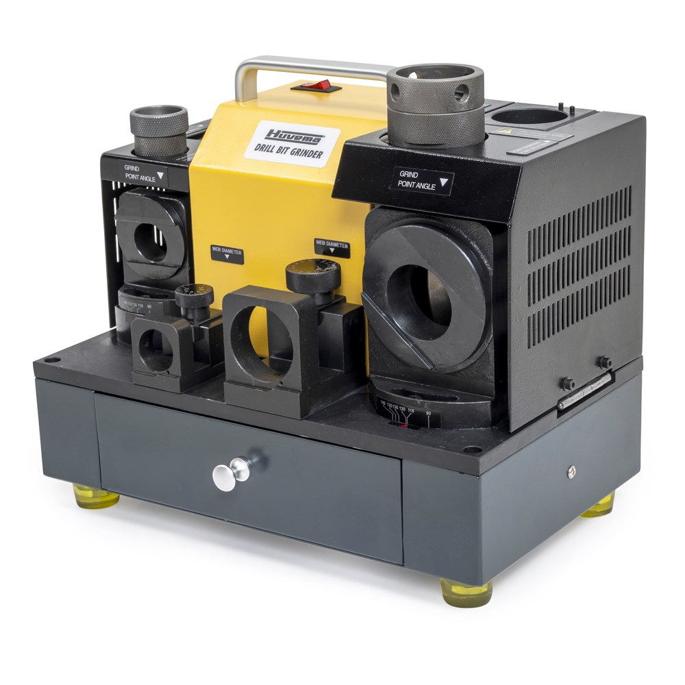 Professionele borenslijper. Slijpt boren van 3 tot 26 mm perfect aan. Héél eenvoudig en snel in gebruik. Slijpt ook de ziel van de boor perfect weg tot het center. De tophoek is instelbaar tussen 85° en 140°. Tegen meerprijs tot 32 mm.