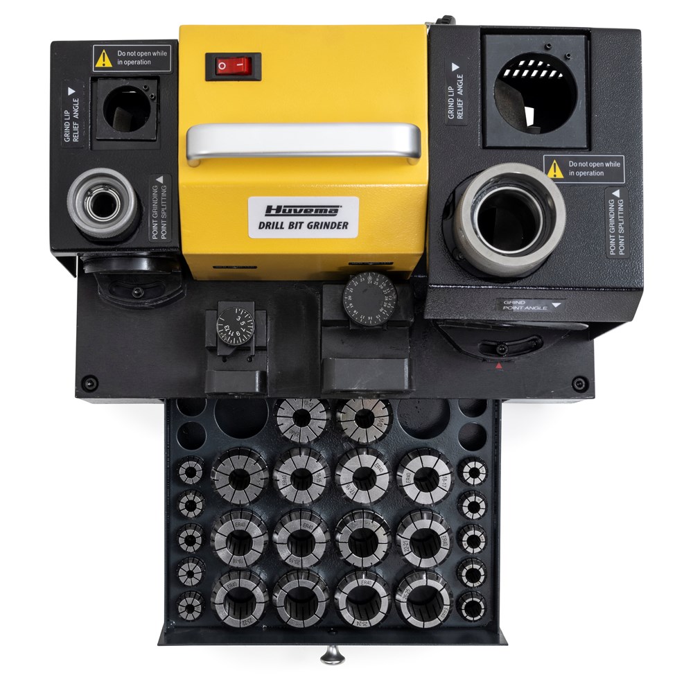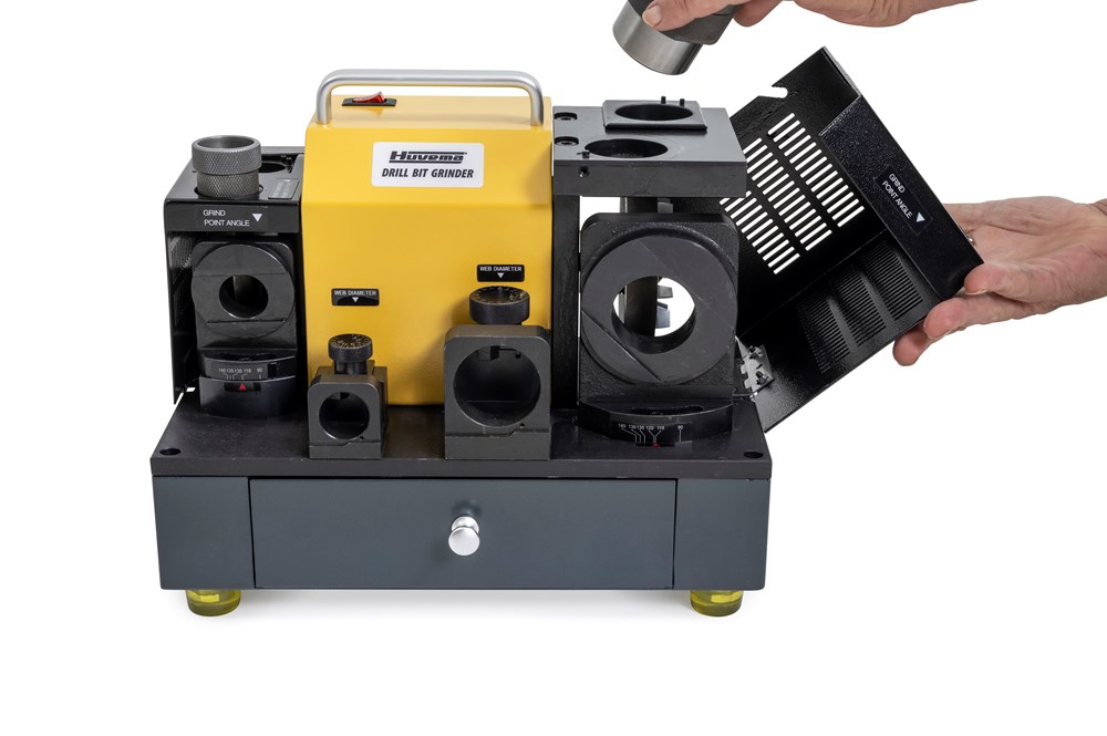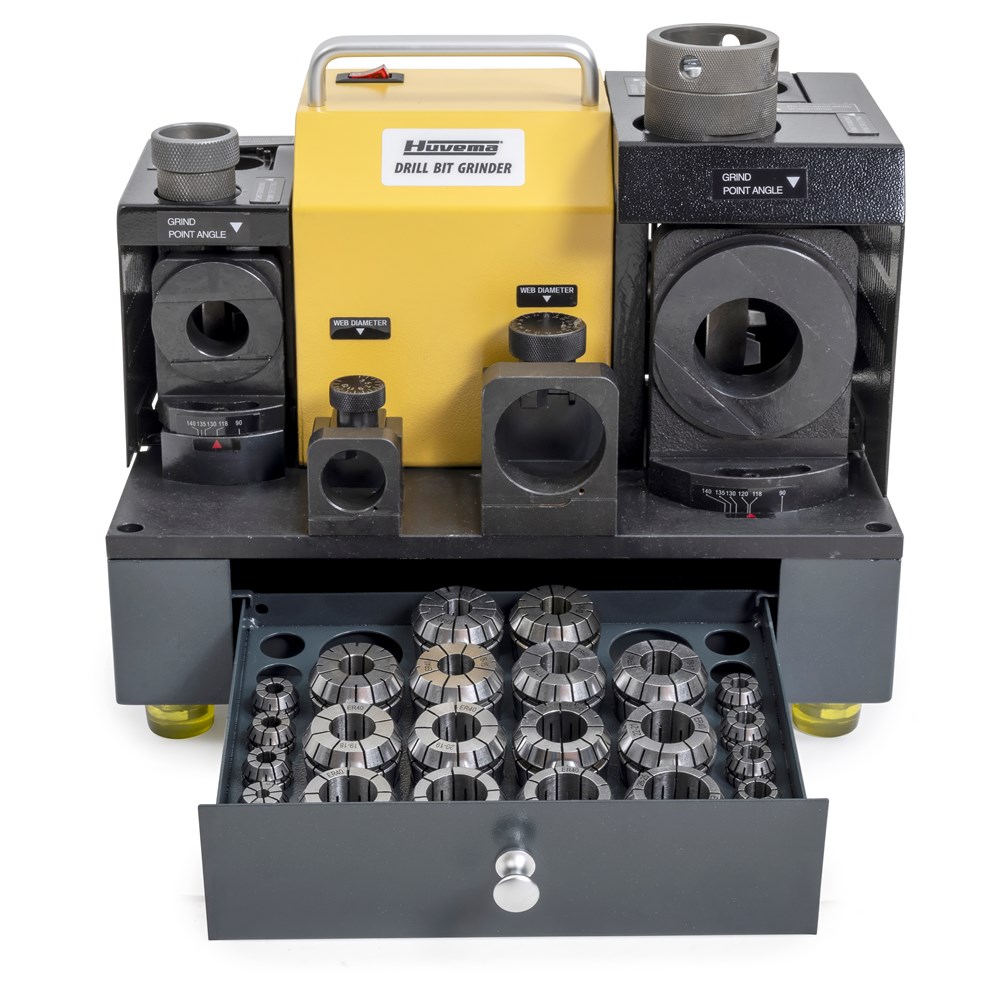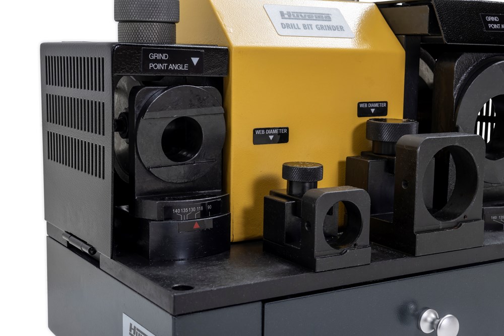 Professionele borenslijper. Slijpt boren van 3 tot 26 mm perfect aan. Héél eenvoudig en snel in gebruik. Slijpt ook de ziel van de boor perfect weg tot het center. De tophoek is instelbaar tussen 85° en 140°. Tegen meerprijs tot 32 mm.