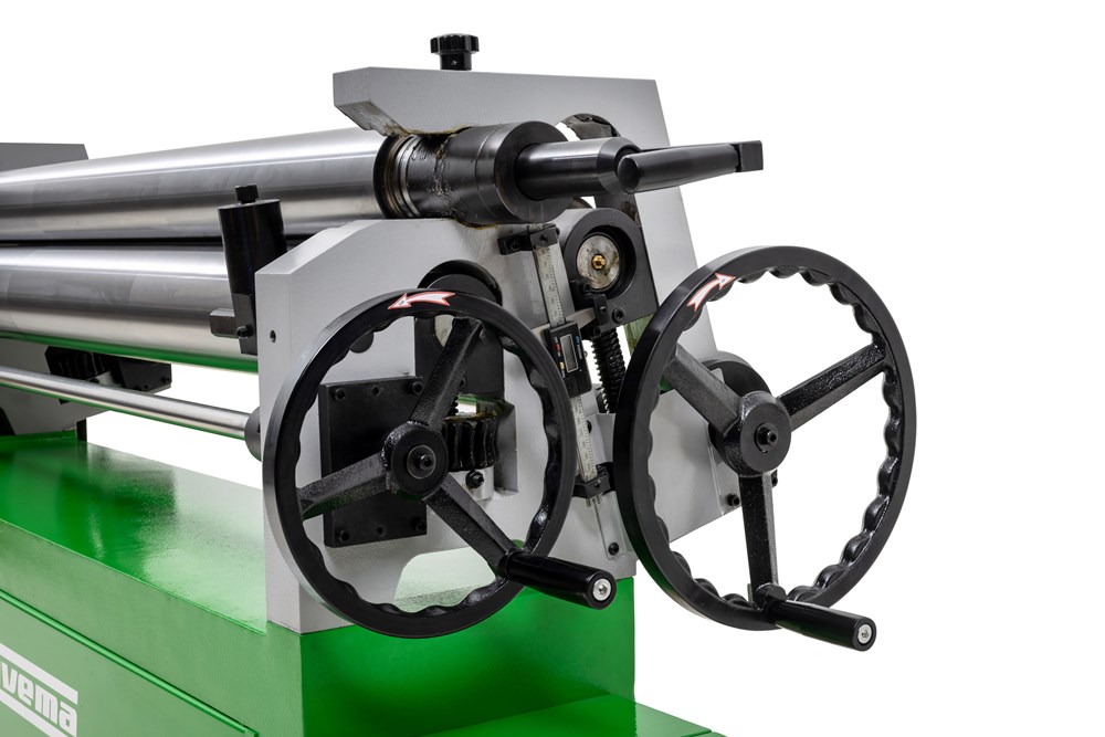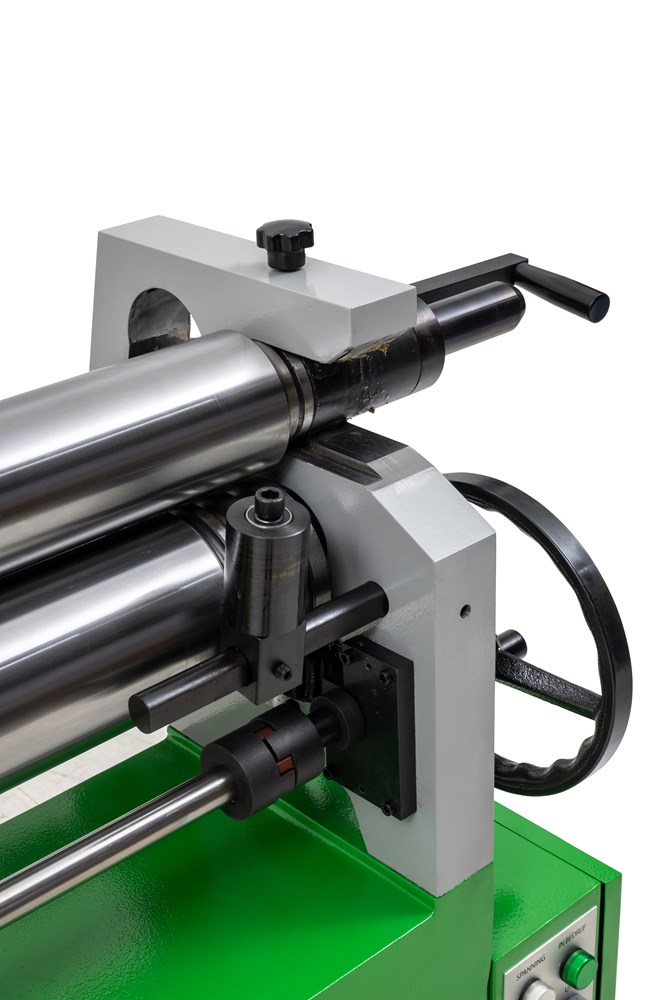 Elektrische, voetbediende rollenwals. Zware gelaste en robuuste constructie. Achterrol kan zodanig ingesteld worden dat er conisch gewalst kan worden. Bovenrol kan gezwenkt worden voor het uitnemen van het werkstuk. Comfortabel in gebruik en geschikt voor werkplaats en ambacht.