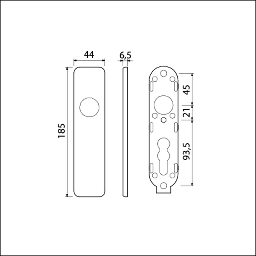 Kortschild 185/44 RH Klik kenmerkt zich door de blinde bevestiging van een hoogwaardig geanodiseerde aluminium afdekplaat op een nylon onderplaat met geintegreerde nylon ring.