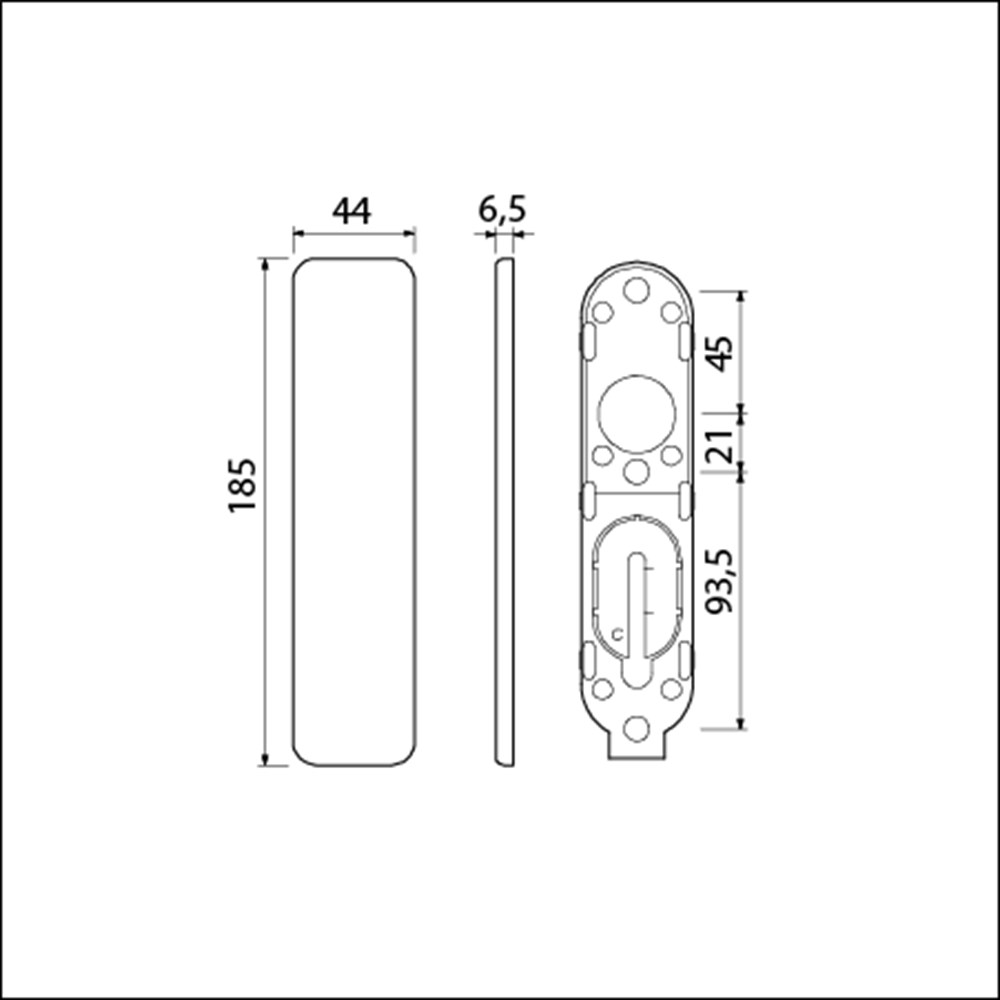 Kortschild 185/44 RH Klik kenmerkt zich door de blinde bevestiging van een hoogwaardig geanodiseerde aluminium afdekplaat op een nylon onderplaat met geintegreerde nylon ring.