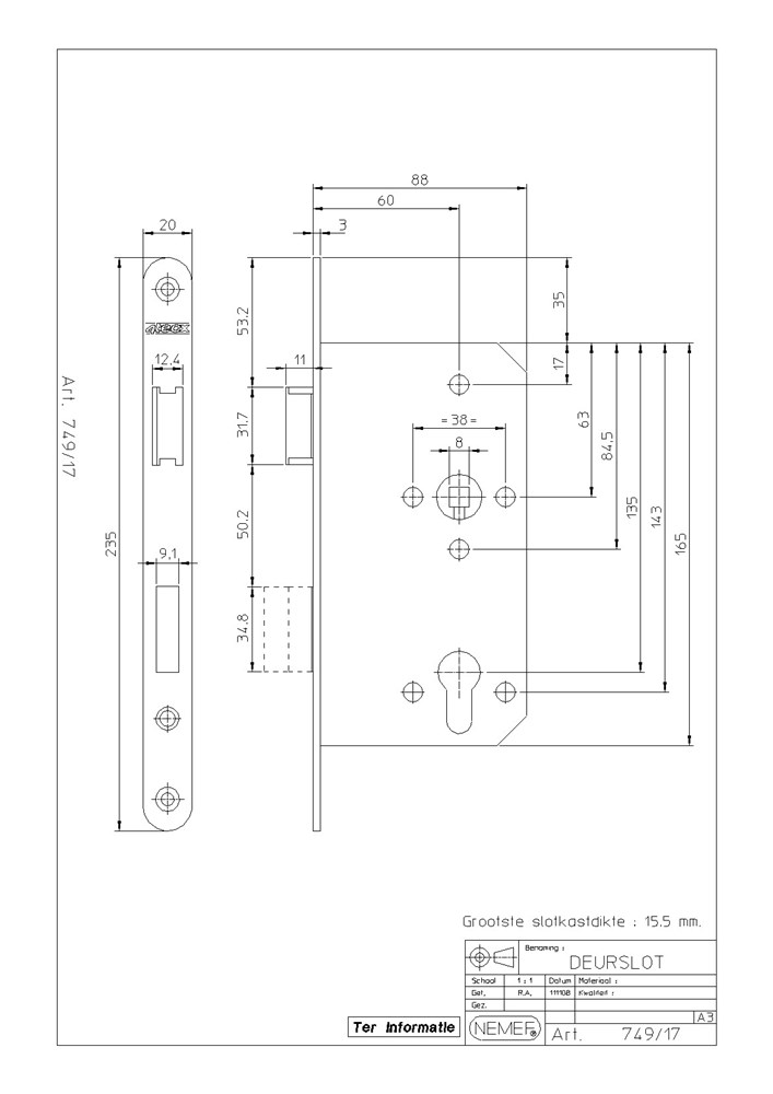 4tecx project dag+nacht slot U60-72 rvs voorplaat 20x235