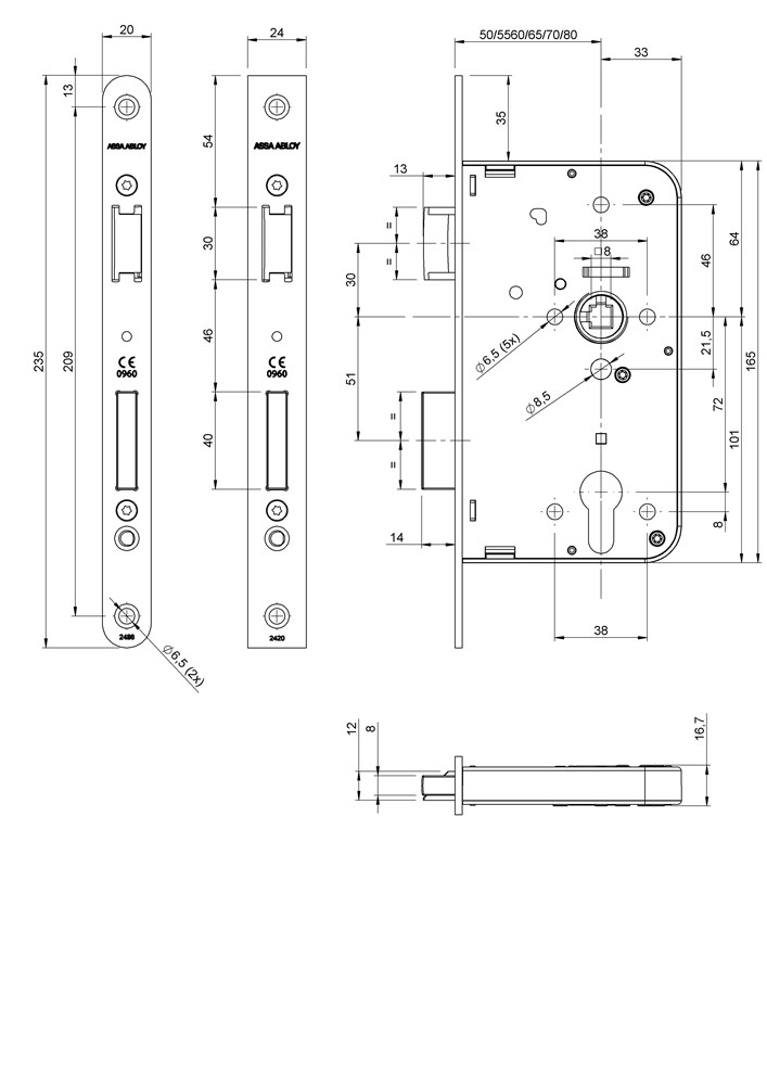 Assa project dag+nacht slot 2420 17T24-60 rvs voorplaat 20x235