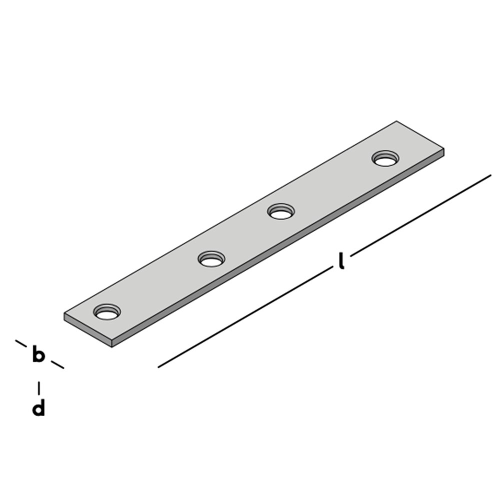 Strip met een regelmatig spijker en/of schroefgatenpatroon om lichte houten delen vlak met elkaar te verbinden. Verbindingsplaten worden geproduceerd uit 2 mm staal met sendzimir verzinkt of zink magenesium bescherming en zijn leverbaar in verschillende lengte- en breedtematen.