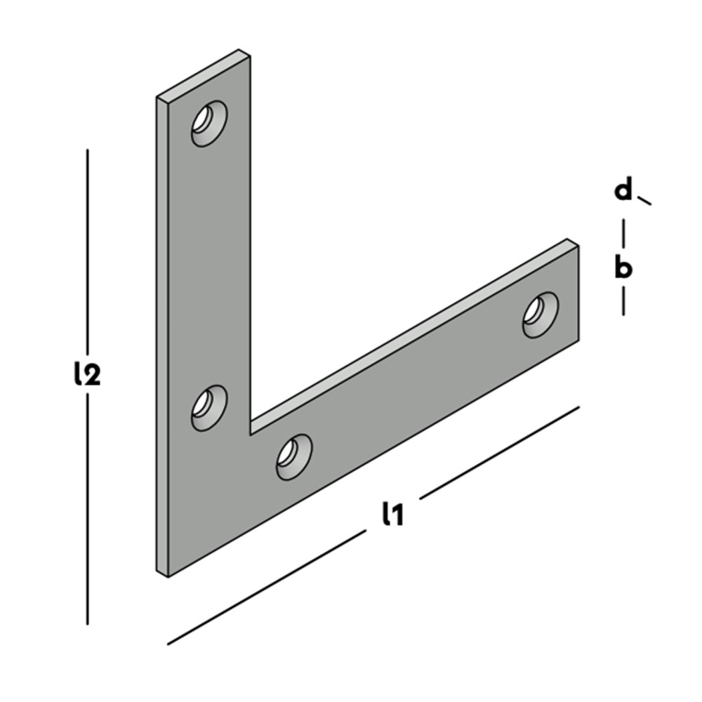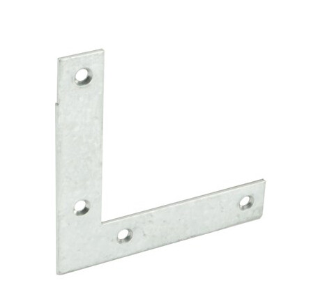 Vlak hoekijzer met schroefgaten. Geschikt om haakse houtverbindingen te versterken.