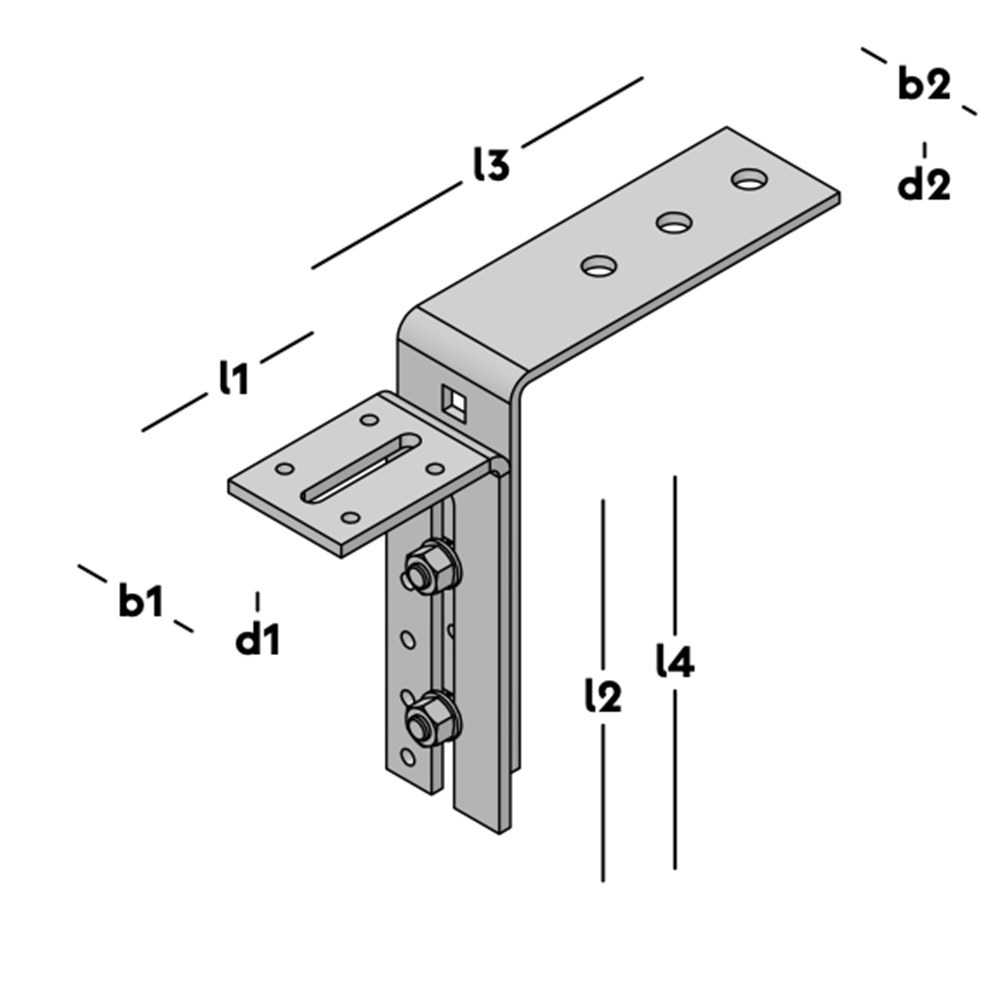 Verstelbare kozijn- vloerverbinding bestaande uit een vloerhoek, een hoekanker en een set slotbouten. De vloerhoek wordt gemonteerd aan de vloerrand. Het hoekanker wordt verstelbaar aan de vloerhoek bevestigd t.b.v. de onderdorpelmontage van kozijnen of puien. Door het afgestemde gatenpatroon kan de hoek na het stellen extra tegen afschuiving gefixeerd worden. Kozijnstelhoeken zijn leverbaar in verschillende afmetingen, uitvoeringen en oppervlaktebehandelingen.