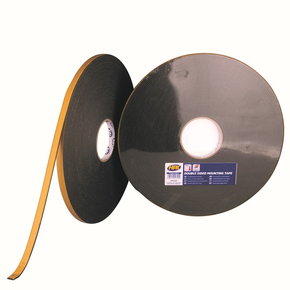 Dubbelzijdige tape DA 12mm 25mtr 3.0mm antraciet polyethyleenschuim/synt rubber