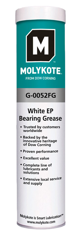 Voor vele toepassingen bruikbaar vet voor de voedingsmiddelenindustrie. Het witte lagervet is een hoogwaardig smeermiddel ontworpen voor gebruik in de voedingsmiddelenindustrie. Het vet is samengesteld uit een minerale basisolie met een aluminium- complex verdikker en is versterkt met Extreem Pressure (EP) additieven. Molykote G-0052FG is een juiste keus als het smeermiddel moet voldoen aan de eisen van de NSF H-1 of als het smeermiddel geen contaminatie mag geven met donkergekleurde deeltjes en een schoon uiterlijk van belang is.