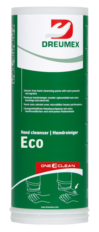 Dreumex Eco is een milieuvriendelijke krachtige reiniginspasta voor middelzware tot zware vervuilingen zoals smeermiddelen, diesel, remvloeistof, cement, roest, etc. Dreumex Eco bevat geen oplosmiddelen en een afvalproduct van mais wordt gebruikt als scrub korrel in de zeep. Dreumex Eco is volledig biologisch afbreekbaar, zonder afbreuk te doen aan de prestaties van het product, het is gegarandeerd veilig voor het milieu.