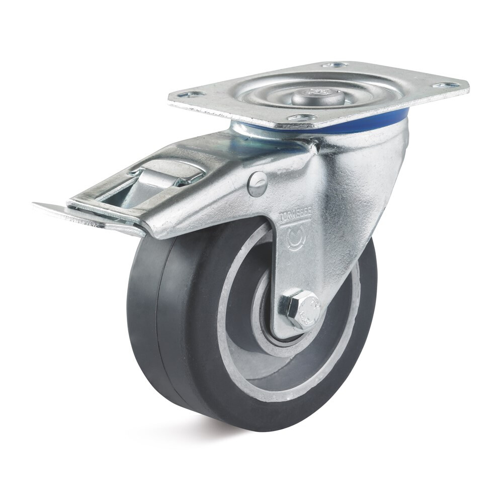 Zwenkwiel+rem alu-vulkan 125mm 200kg