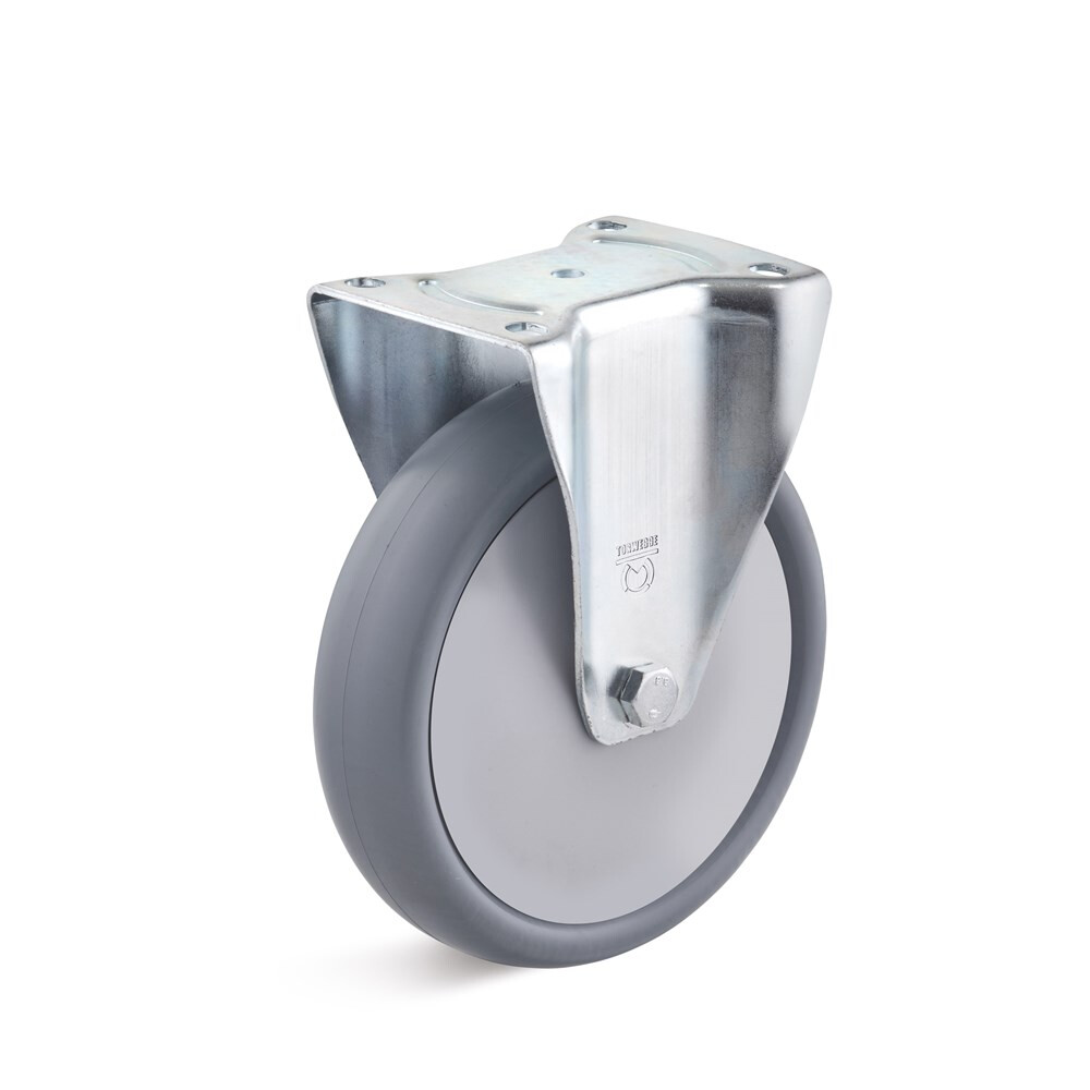 Bokwiel, polypropyleen velg met centraal kogellager en grijze thermoplastische rubberband ± 85° Shore