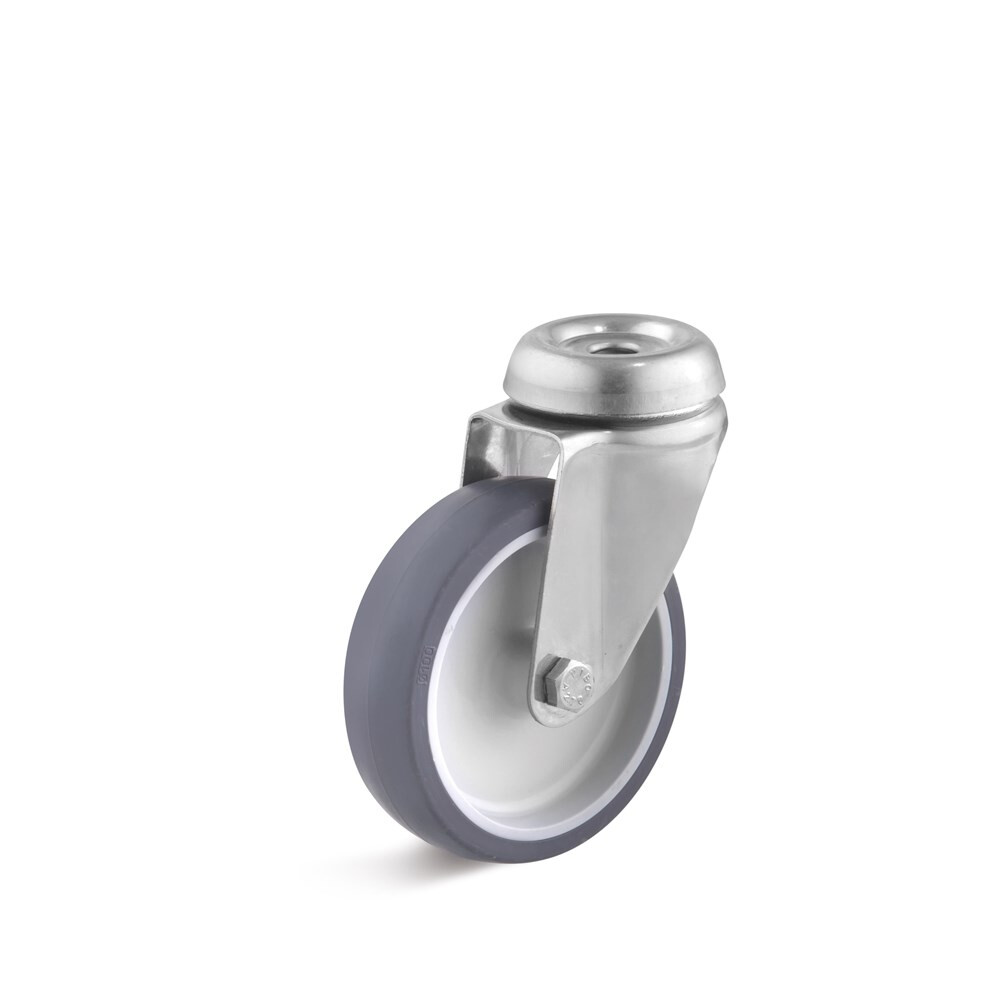 Rvs zwenkwiel 100mm thermoplast 80kg boutgat