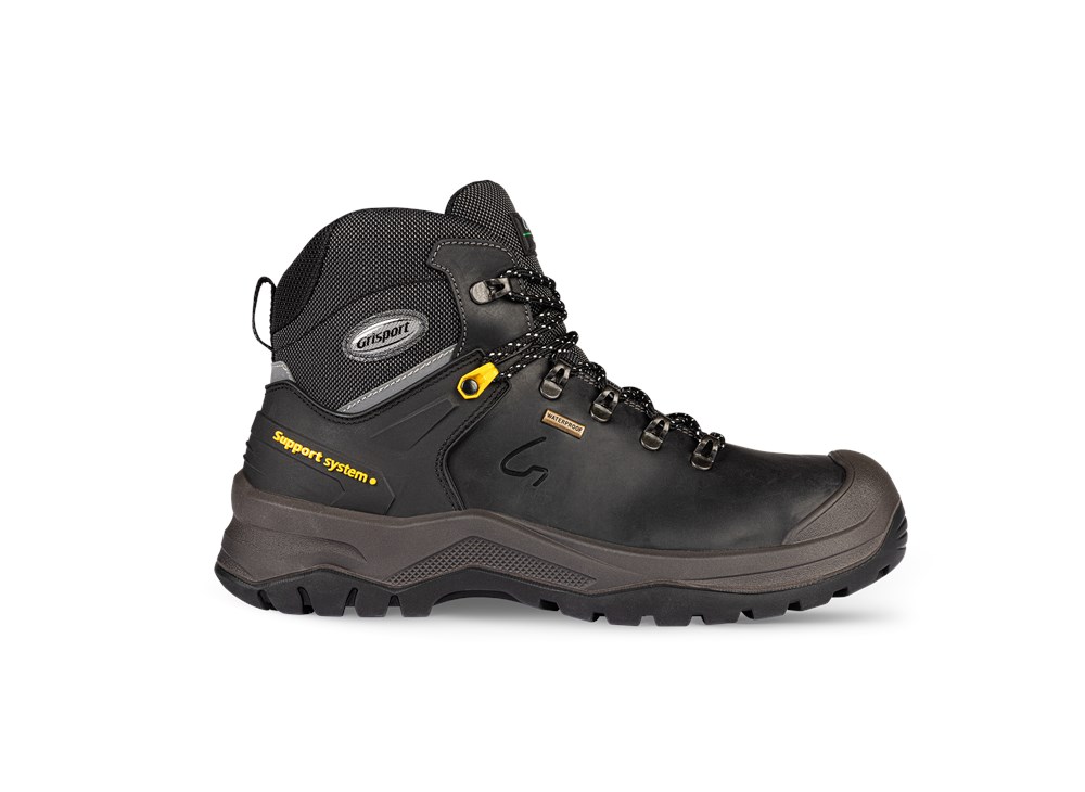 Deze zwarte lederen werkschoen van het merk Grisport type 70211C met veiligheidsklasse S7L heeft een geperforeerde stalen neus en metaalvrije technical fibers tussenzool. De speciale Sympatex voering zorgt ervoor dat deze schoen volledig waterdicht is. Het Grisport Heel Support System geeft extra steun en bescherming aan deze werkschoen. De zool heeft bovendien een grof anti-slipprofiel en een stevige overneus van PU. Dankzij 3M reflectoren ben je extra goed zichtbaar voor je omgeving.
