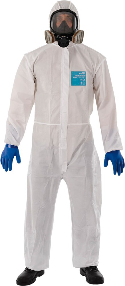 • De cruciale plekken aan de voorkant van de kleding (waaronder capuchon, armen en benen) zijn Microgard 2000 en bieden een hoog niveau van bescherming tegen vloeistoffen en stofdeeltjes met een laag niveau van weerstand tegen waterdamp