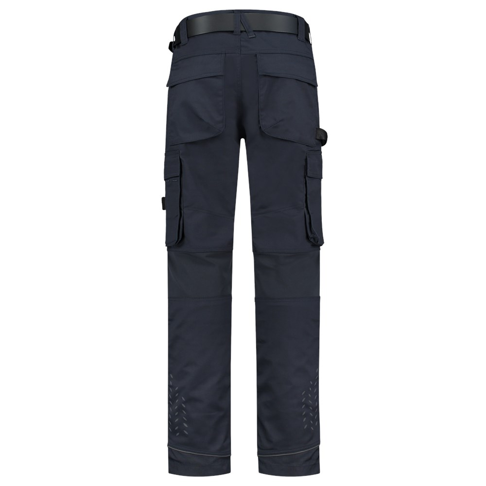 De worker onder de werkbroeken: De werkbroek Twill Cordura Stretch is een luxe worker welke je zelfs na een lange werkdag niet uit wilt trekken. De broek heeft een soepele mechanische stretch in het doek en 4-way stretch delen bij de knieholten en in het kruis. Dit maakt de bewegingsvrijheid in deze broek optimaal! De taille is naar wens aan te passen middels een elastische band in de taille. Bij Tricorp kleden wij elke professional: lang, kort, dik en dun: de worker is daarom verkrijgbaar in 3 lengtematen. Tevens is de zoom 6 cm verlengbaar. De worker biedt met diverse zakken genoeg opbergruimte voor het gereedschap dat je bij je draagt tijdens het uitvoeren van het werk. Je sluit de broek met een verdekte knoop, waardoor je tijdens het werken niet gehinderd wordt door een uitstekende knoop. De reflectie print zorgt voor extra zichtbaarheid. Match de broek met de bijpassende verstelbare swingpockets, te bevestigen aan de riemlussen aan voor- en zijkant. Kniekussens kunnen op meerdere hoogtes worden aangebracht in de Cordura kniestukken.