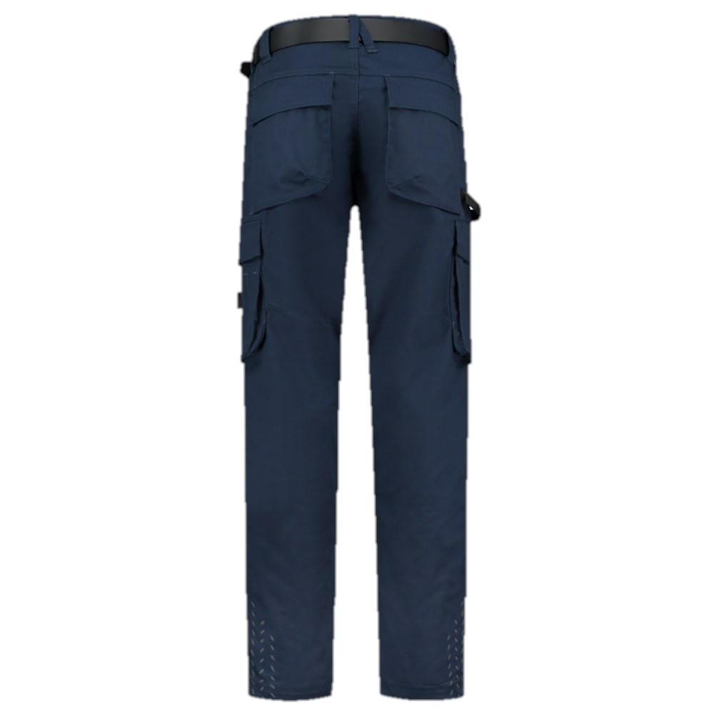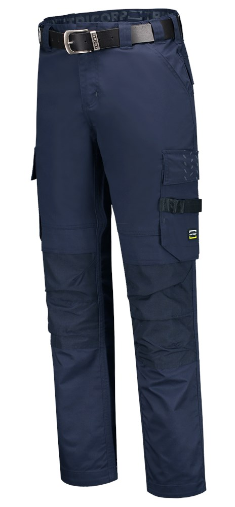 De werkbroek Twill Cordura is een slijtvaste werkbroek, waar je van op aan kunt. De taille is naar wens aan te passen middels een elastische band in de taille. Bij Tricorp kleden wij elke professional: lang, kort, dik en dun: de worker is daarom verkrijgbaar in 3 lengtematen. Tevens is de zoom 6 cm verlengbaar. De worker biedt met diverse zakken genoeg opbergruimte voor het gereedschap dat je bij je draagt tijdens het uitvoeren van het werk. Je sluit de broek met een verdekte knoop, waardoor je tijdens het werken niet gehinderd wordt door een uitstekende knoop. De reflectie print zorgt voor extra zichtbaarheid. Match de broek met de bijpassende verstelbare swingpockets, te bevestigen aan de riemlussen aan voor- en zijkant. Kniekussens kunnen op meerdere hoogtes worden aangebracht in de Cordura kniestukken.