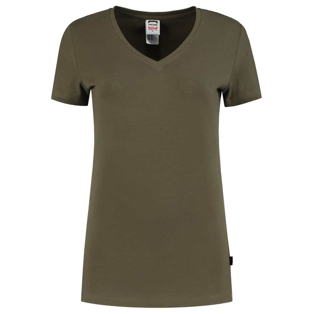 Tricorp dames t-shirt 101008 slim fit v-hals 101008 army (groen) 5XL