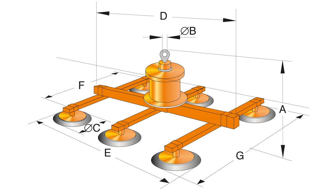 Altijd de materiaalspecificaties en afmetingen (L x B x D) van de te heffen plaat cq werkstuk doorgeven.