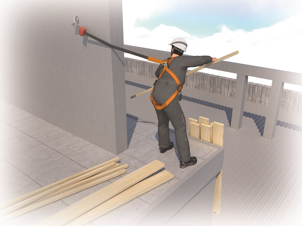 VERTICAL 2,50 M - Kant-en-klare valbeschermingskit: Valbeschermingsharnas met 2 bevestigingspunten (rug - borst). 2 gespen. Comfortregeling via 2 zijdelingse beugels aan het harnas. (Ref. HAR12). Valbeveiligingslsysteem met automatische lijnspanner type band 46 mm met energie-absorber Beschermend omhulsel. 1 verbindingsstuk AM002 (Ref. AN102). 1 verbindingsstuk AM002. Harnas voor valbeveiliging: Polyester riemen. Valbeveiliging met automatische blokkering: Kunststoffen carter, polyester riem. Karabijnhaak: Staal.