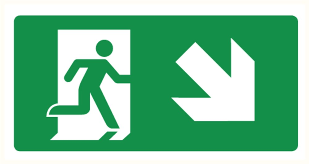 Nooduitgang rechts omlaag vinyl-sticker 150x300mm