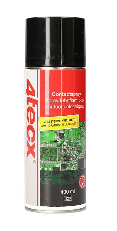 4tecx Contactspray is een roest oplossende contactreinigingsmiddel in combinatie met een hoogwaardige glij- en beschermingsolie. Het waarborgt een duurzame, storingsvrije werking van elektrische apparaten. 4tecx Contactspray maakt vuil los en verwijdert storende contactweerstanden. Vermindert de mechanische weerstand en beschermt langdurig tegen vocht en roest. Ideaal voor stekkers, schakelaars, regelaars enz. met name tegen weersinvloeden. 4tecx Contactspray heeft een gericht spuitbeeld en is onder elke hoek te gebruiken (360°)