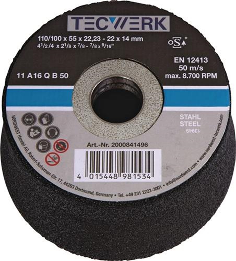 Slijpkom A16Q 110/100 mm staal en gietstaal 16 gat 22,23 mm TECWERK