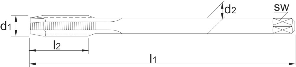 DIN 376, doorloopschacht, met schilaansnijding voor doorlopende gaten, aansnijding 3,5-5 gangen