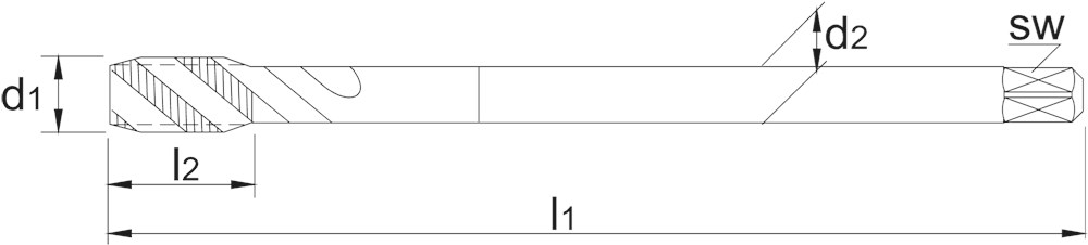DIN 374, doorloopschacht, spiraalhoek 35°, voor blinde gaten, aansnijding 2-3 gangen