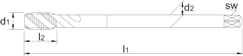 DIN 5156, doorloopschacht, spiraalhoek 35°, voor blinde gaten, aansnijding 2-3 gangen