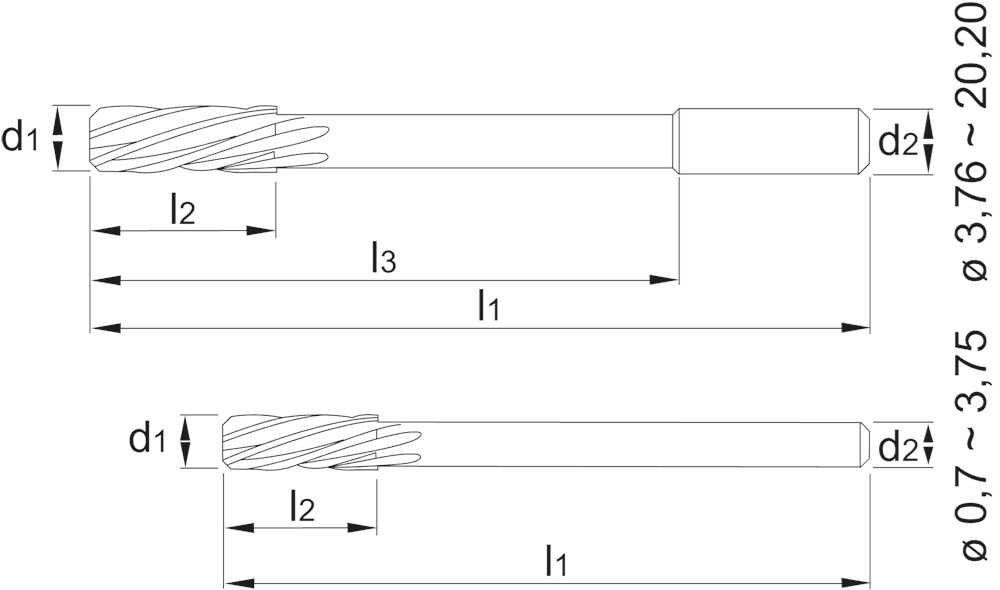 DIN 212, cilindrische schacht, spiraalgroeven