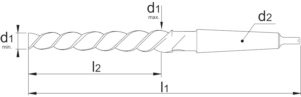 DIN 2180, Morse conus opname, spiraalgroeven, spiraalhoek 45°, hoek 1°08', voor machinaal gebruik