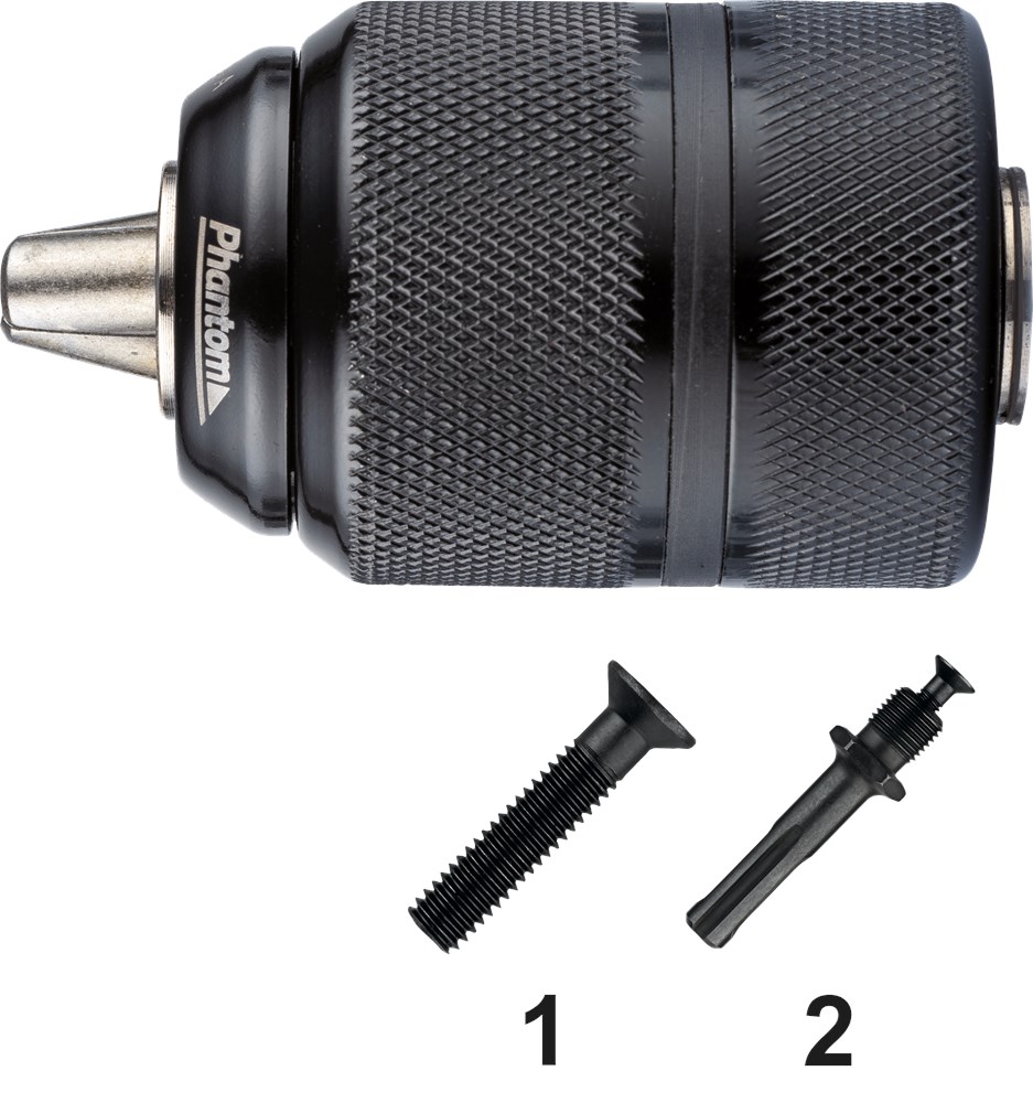 De Phantom Snelspanboorhouder is een Heavy-Duty, slagvaste boorkop, uitgevoerd in een robuuste metalen constructie. Deze boorkop is ontworpen voor zwaar professioneel gebruik en is geschikt voor rechts- en linksom draaien en de klopboorstand. Het mechanisme maakt snel boren wisselen mogelijk. De 13 mm versie beschikt over een gepatenteerde ratel die de spankracht borgt en de klopvastheid garandeert, waardoor de boor zelfs bij zware klopboortoepassingen niet losraakt.